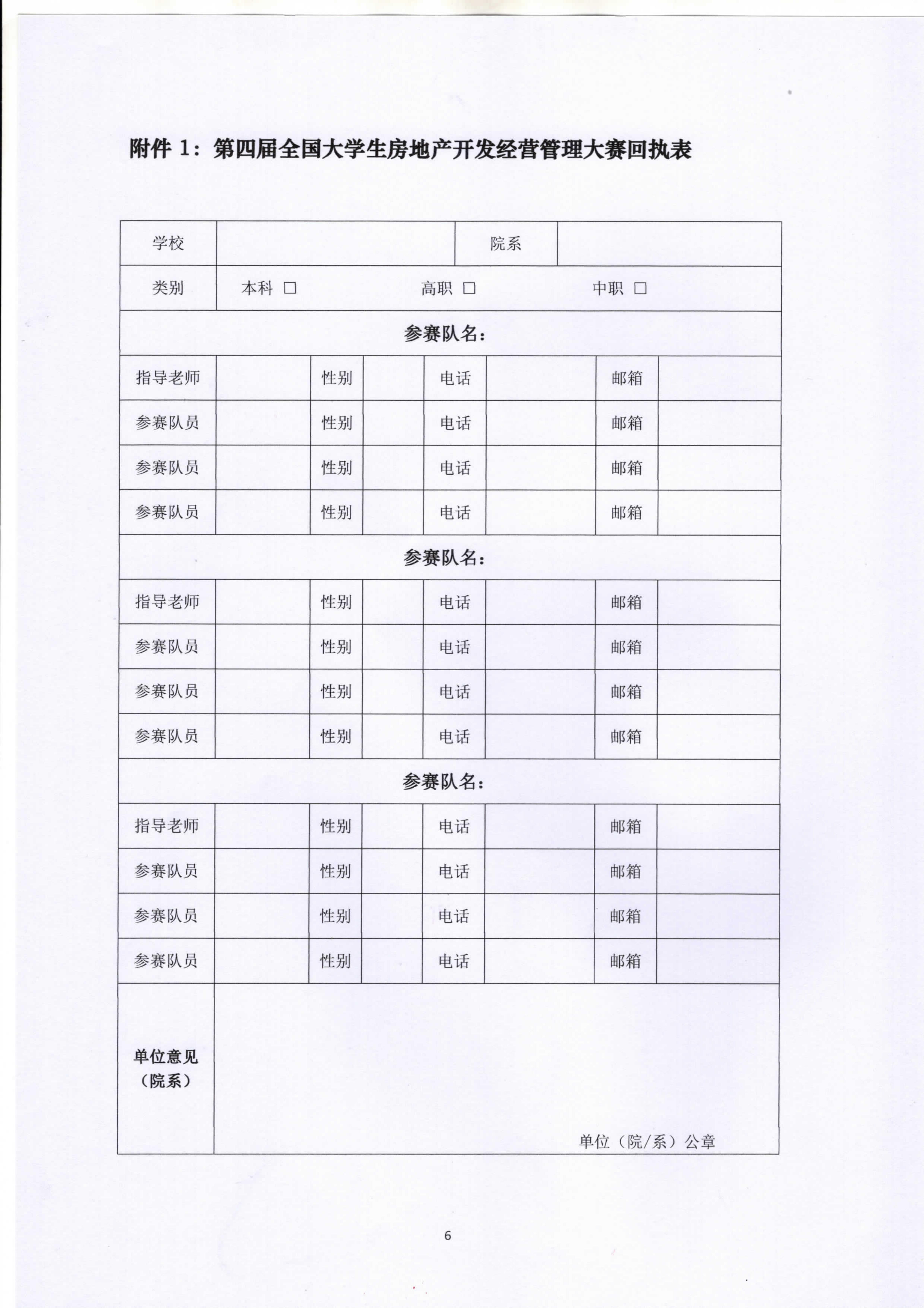 點擊下載:第四屆全國大學生房地產(chǎn)開發(fā)經(jīng)營管理大賽報名表