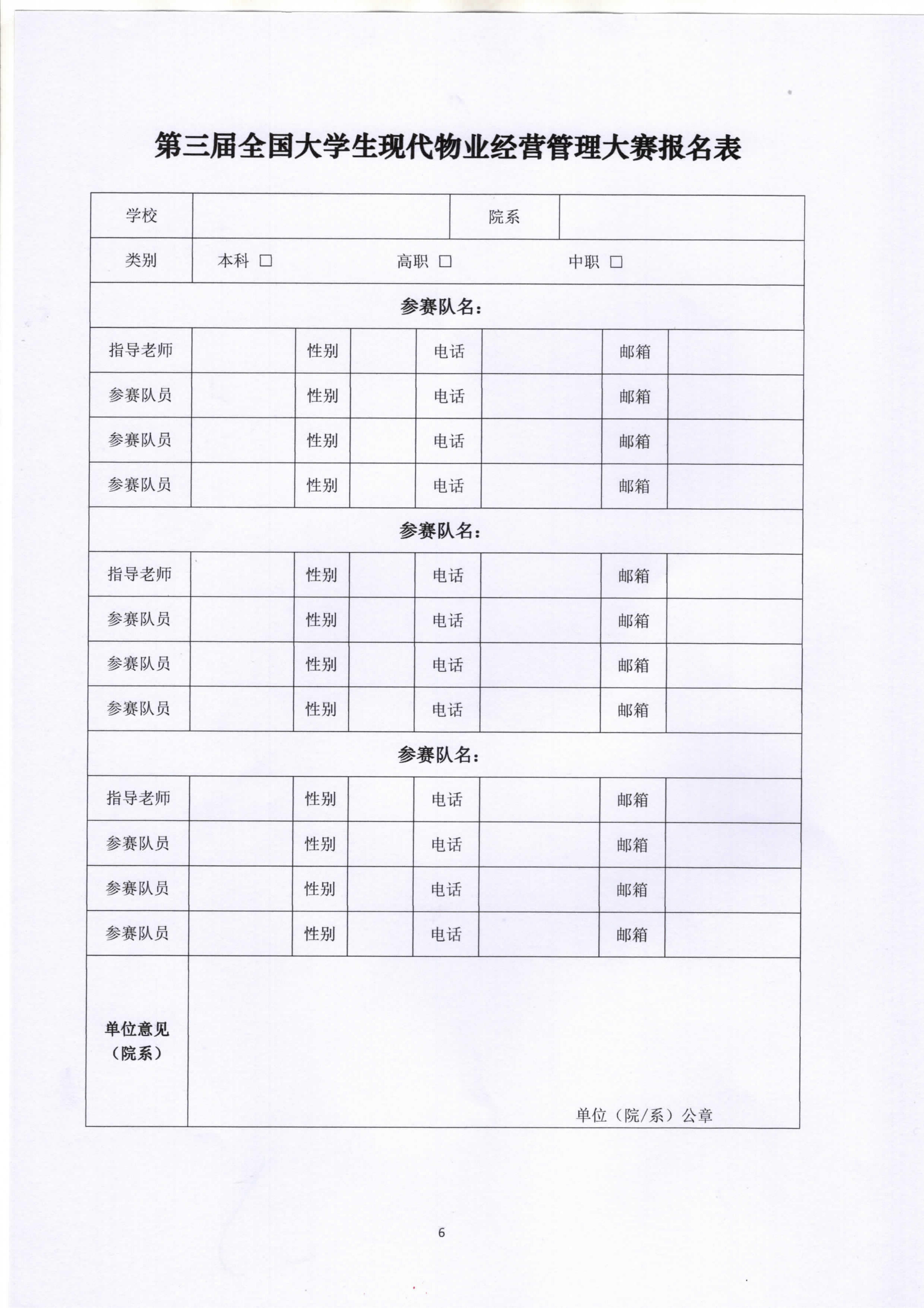 點擊下載: 第三屆全國大學(xué)生現(xiàn)代物業(yè)經(jīng)營管理大賽報名表